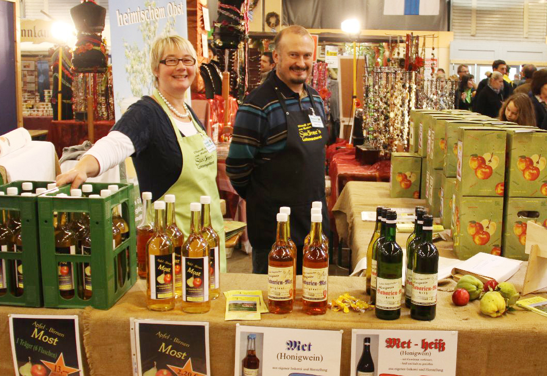 Bio-Apfelchips, Honigwein, Bioobst während der Saison